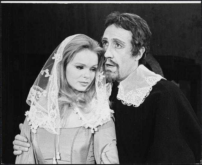 [Jason Robards as Urbain Grandier and Lynda Day as Phillipe Trincant in "The Devils".]