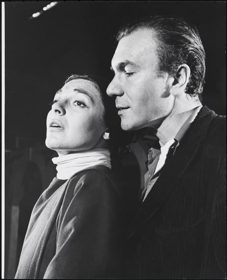 [Anne Bancroft as Sister Jean of the Angels and Jason Robards as Urbain Grandier in "The Devils".]