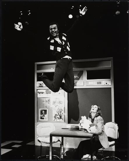 [P. J. Benjamin as Charlie and Nancy Franklin as Mrs. Donner in "Charlie and Algernon".]