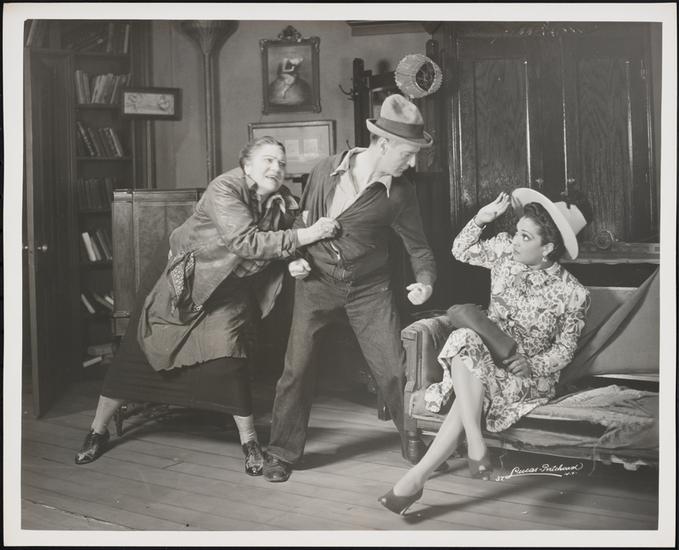 [Edna Mae Harris as Bessie, Anna Appel as Hannah, and Grace Mills as Mrs. Kurtmann in "Good Neighbor".]