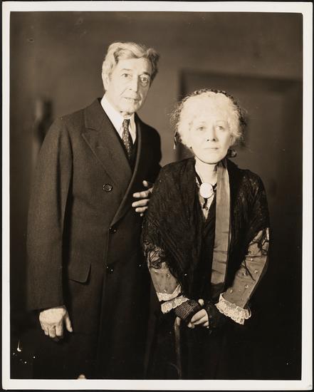 [Gladys George as Mom Quigley and Lee Baker as Reverend Jonas West in "The Distant City".]