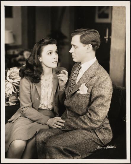 [Leon Ames as Douglas Proctor and Mary Anderson as Evelyn Heath in "Guest in the House".]