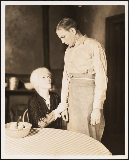 [Lee Baker as Reverend Jonas West and Gladys George as Mom Quigley in "The Distant City".]