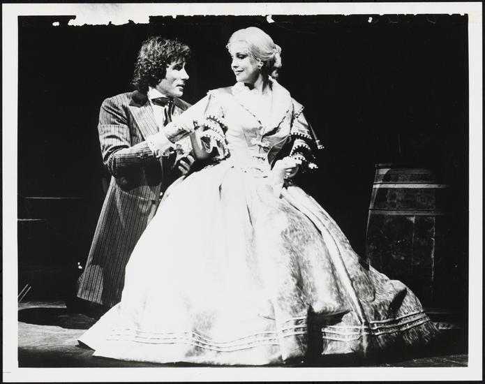 [Jim Dale as P. T. Barnum and Marianne Tatum as Jenny Lind in "Barnum".]
