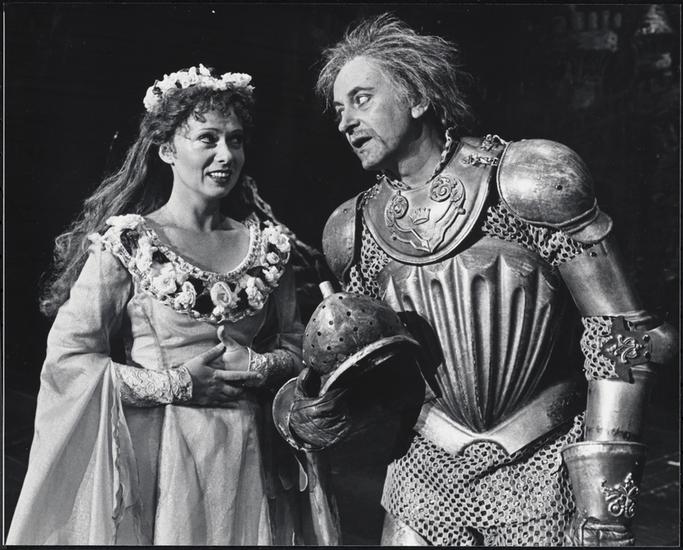 [Meg Bussert as Guenevere and Richard Harris as Arthur in "Camelot".]