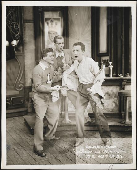 [Red Buttons as "Dinky" Bennett, Kenny Buffett as "Judge" Rogers, and Ada Lynne as Millie Henderson in "Hold It!".]