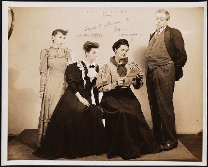 [Mary Anderson as Evelyn Heath, Leon Ames as Douglas Proctor, and Louise Campbell as Ann Proctor in "Guest in the House".]