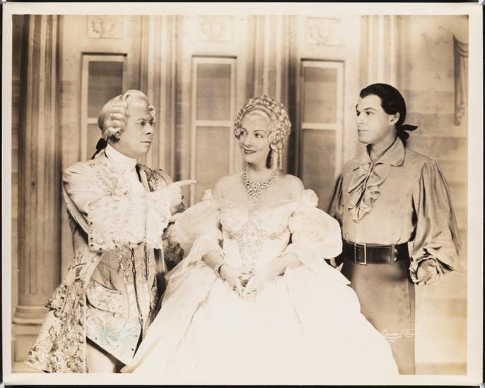 [Frances Williams as Mme. La Comtesse du Barry with an unidentified actor in the role of The King of France in "Du Barry Was a Lady".]