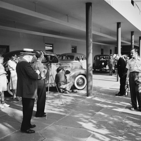 [Young woman taking pictures at the Venezuelan pavilion, New York World's Fair.]