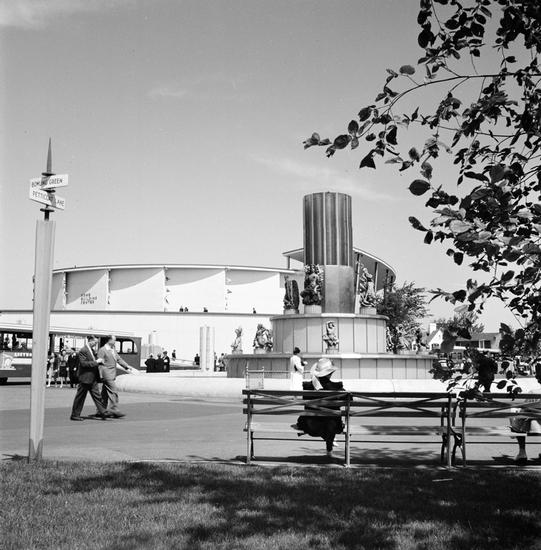 [Community Interests Zone with "Textiles" statue, New York World's Fair.]