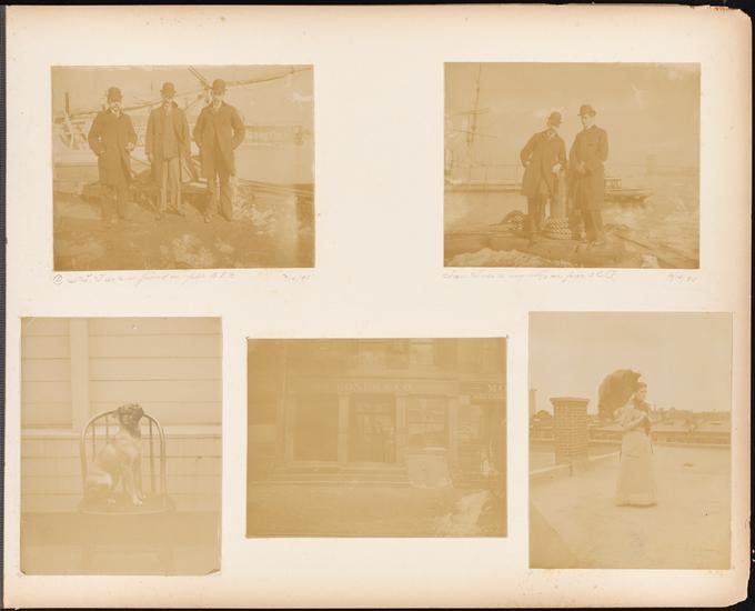 [Men standing on pier.]
