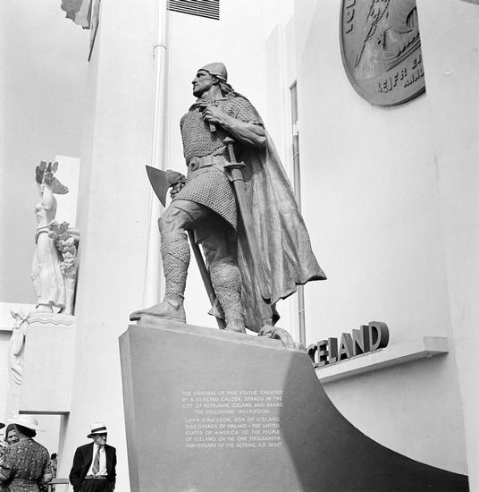 [Statue near entrance to Iceland building, New York World's Fair.]
