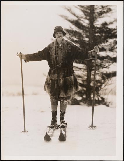 [Mrs. James P. Donahue (neé Jessie Woolworth) pushing her sister-in-law Agnes Donahue in a snow chair.]