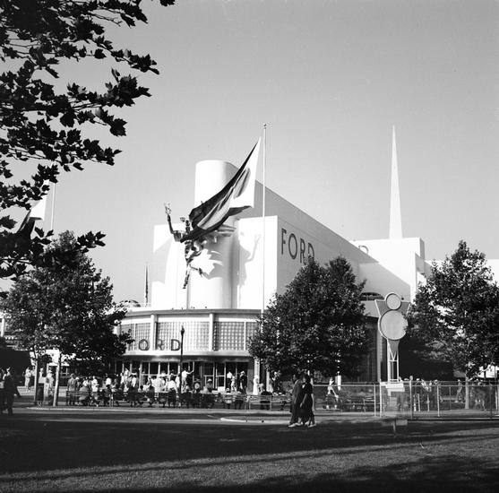 [Ford building at the New York World's Fair, with the Trylon visible.]