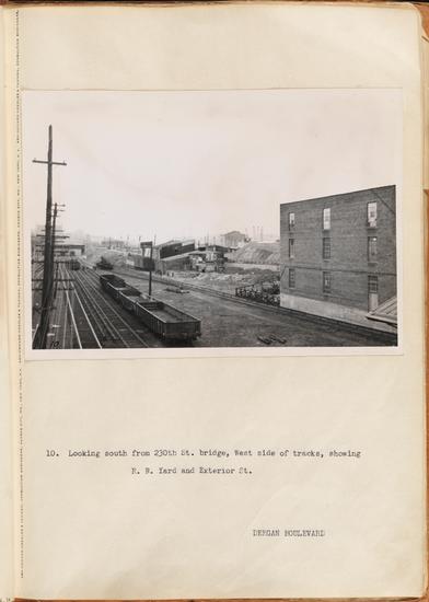 Deegan Boulevard Photographs - Looking north from 225th St., showing R.R. yard on west side of tracks and Exterior St.