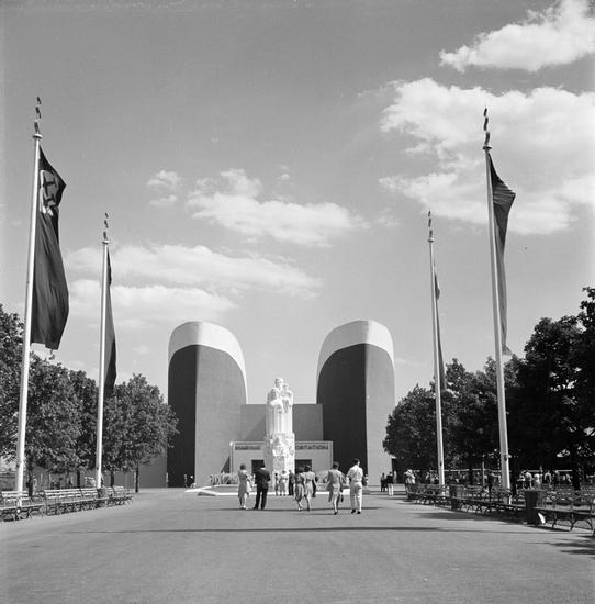 [Grounds of the New York World's Fair, with part of the Administration building visible.]