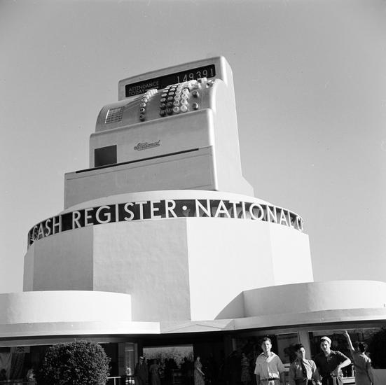 [Carrier building and entrance to the Elgin National Watch Company pavilion, New York World's Fair.]