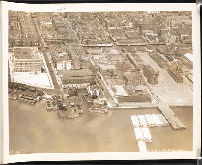 East Shoreline of Manhattan 90th Street to 125th Street [Aerial view of 101st Street to 107th Street along the East River.]