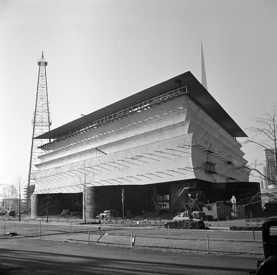 [Marine Transportation building under construction at the New York World's Fair site.]