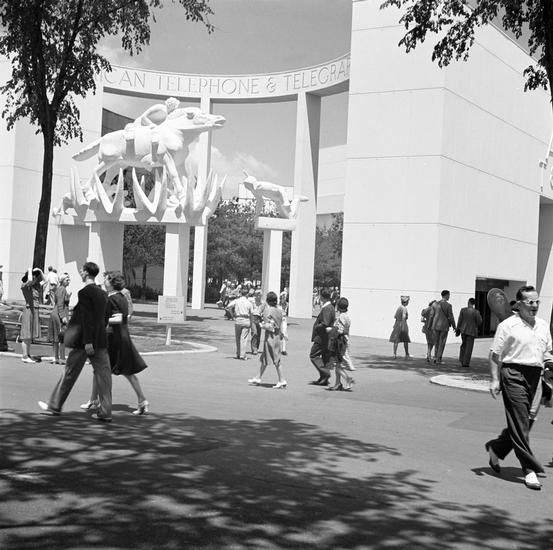 [American Telephone & Telegraph Company building showing The Seven Ages of Man and the Bell System facade, New York World's Fair.]