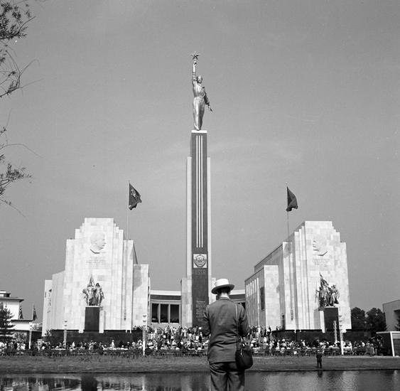 [U.S.S.R. pavilion and American flag, New York World's Fair.]