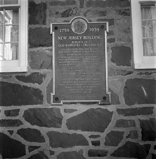 [Sign for the replica of Trenton's Old Barracks at New Jersey exhibit, Court of States, New York World's Fair.]