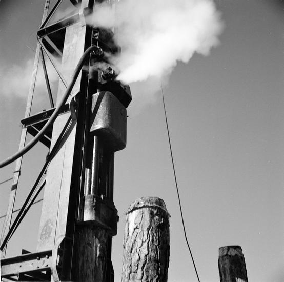 New York Worlds Fair. Aquacade, detail of pilings. Construction view