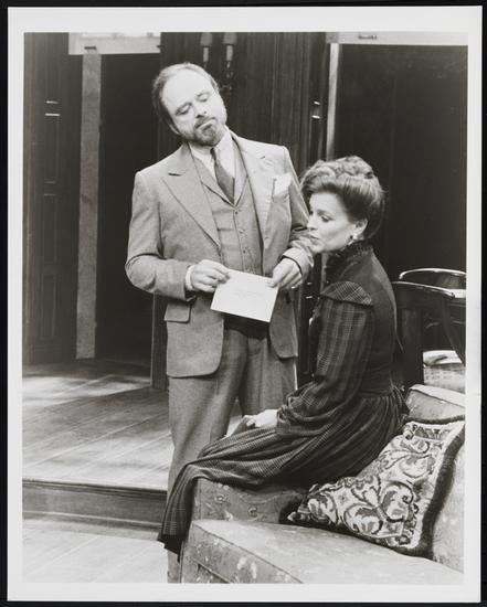 [Harris Yulin as Piet Bezuidenhout and Maria Tucci as Gladys Bezuidenhout in "A Lesson From Aloes".]