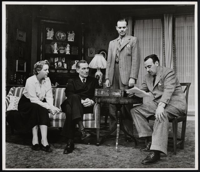 [George Coulouris as Teck de Brancovis, Paul Lukas as Kurt Muller, and Lucile Watson as Fanny Farrelly in "Watch on the Rhine".]