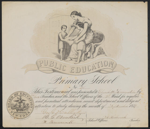 [Testimonial to punctuality, deportment and diligent attention to study.]