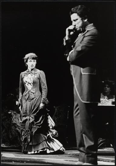 [George Hearn possibly as Johan and Willi Burke as Camilla Forrester in "A Doll's Life".]