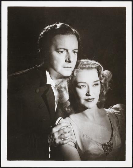 [Maurice Evans in the title role and Doris Lloyd as Gertrude in the national tour of "Hamlet".]