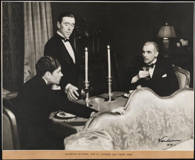 [Laurence Olivier as Julian and James Dale as Mr. Dulcimer in "The Green Bay Tree".]
