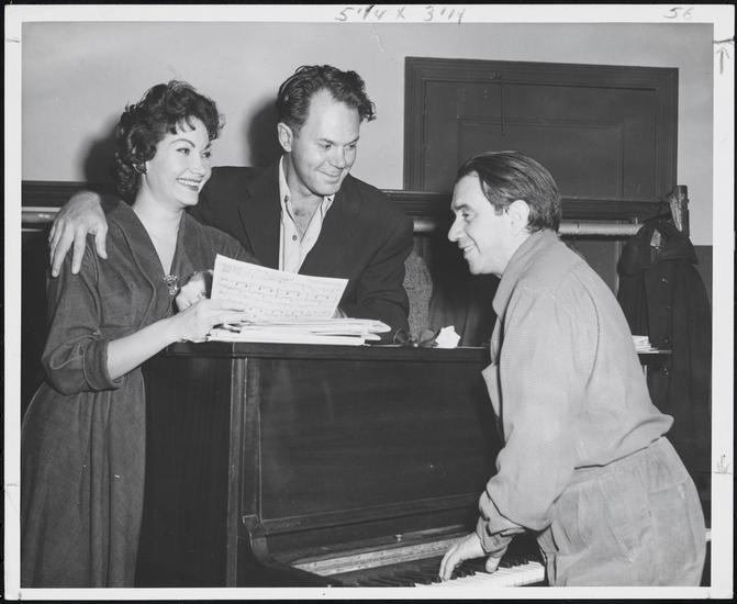 [Charles Goldner as Maestro Gallo and Brenda Lewis as Lotta Leslie in "The Girl in Pink Tights".]