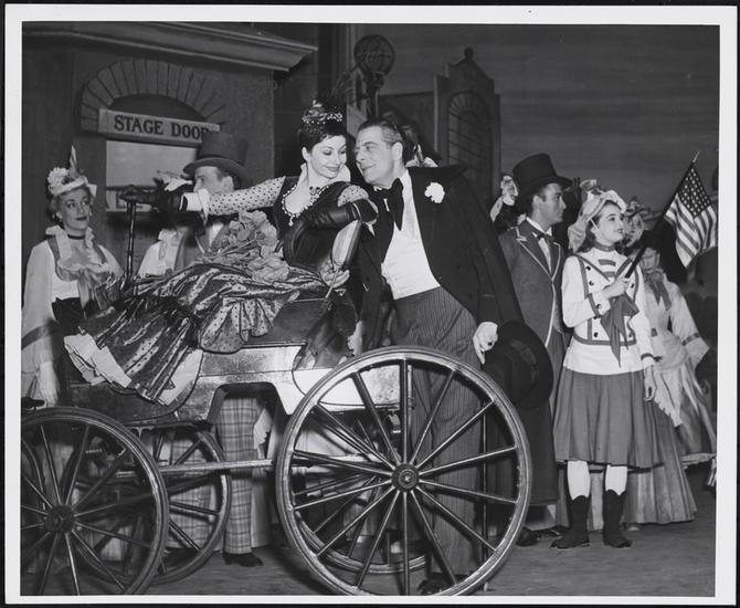 [Charles Goldner as Maestro Gallo and Brenda Lewis as Lotta Leslie in "The Girl in Pink Tights".]