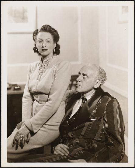 [George Coulouris as Teck de Brancovis and Helen Trenholme as Marthe de Brancovis in "Watch on the Rhine".]
