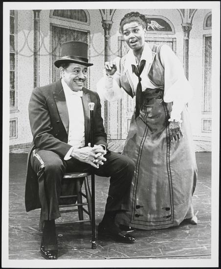 [Cab Calloway as Horace Vandergelder and Pearl Bailey as Mrs. Dolly Gallagher Levi in "Hello, Dolly!".]
