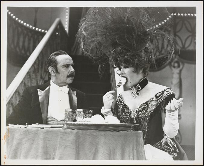 [Eddie Bracken as Horace Vandergelder and Carol Channing as Mrs. Dolly Gallagher Levi in "Hello, Dolly!".]