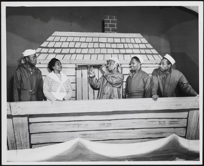 Left to right: William McDaniel, Alma Hubbard as Noah's Wife, Alonzo Bosan as Noah, George Royston, and Robert McFerrin.