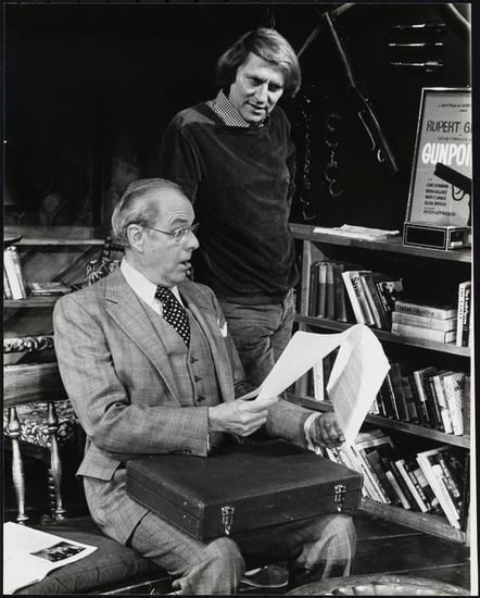 [Donald Barton as Sidney Bruhl and Casper Roos as Porter Milgrim in "Deathtrap".]
