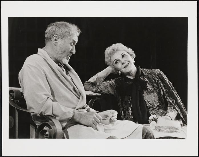 [Mary Martin as Lidya Vasilyevna and Anthony Quayle as Rodion Nikolayevich in "Do You Turn Somersaults?".]