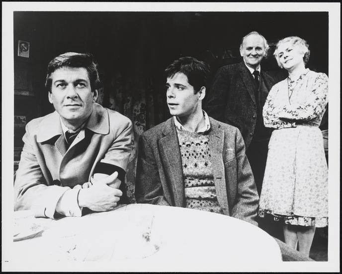 [Brian Murray as Charlie Now, Barnard Hughes as Da, Richard Seer as Young Charlie, and Mia Dillon as Mary Tate in "Da".]