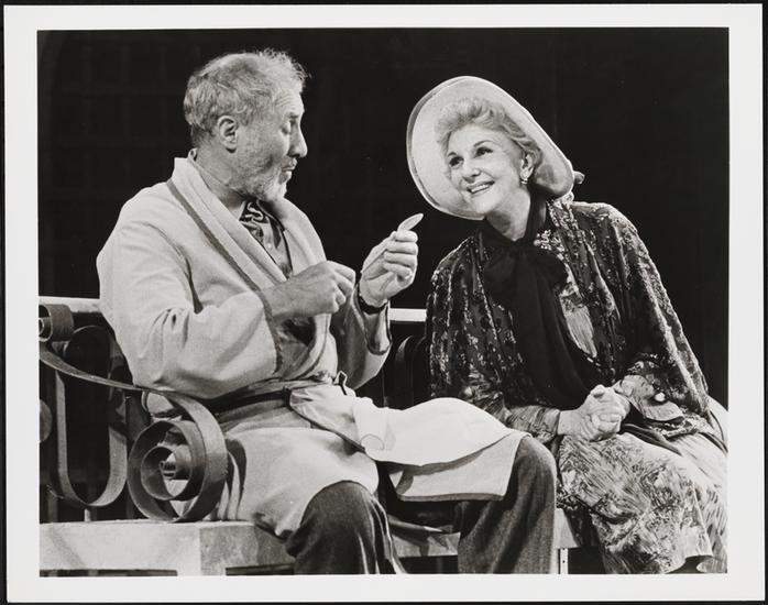 [Mary Martin as Lidya Vasilyevna and Anthony Quayle as Rodion Nikolayevich in "Do You Turn Somersaults?".]