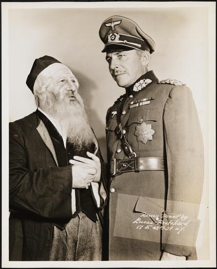 [Harry Green as Avrum Dovid and Arthur Winton as General Von Bruck in "The Day Will Come".]