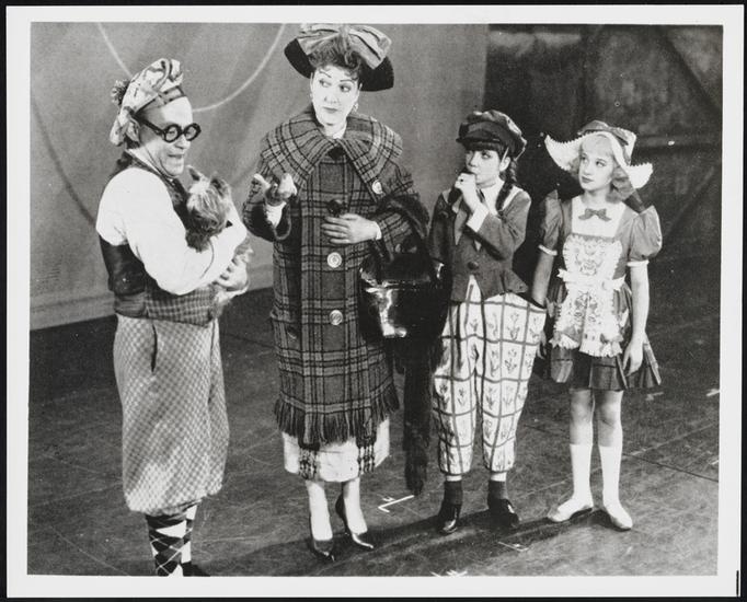 [Sandra Church as Louise, Ethel Merman as Rose, and Jack Klugman as Herbie in "Gypsy".]