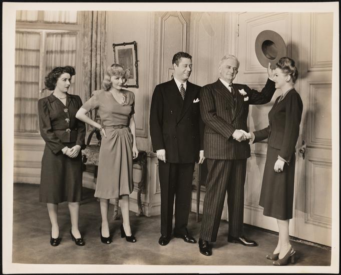 [Vinton Hayworth as Tom Dillon and Doris Nolan as Nan with members of the ensemble in "The Doughgirls".]