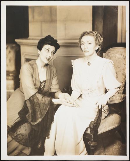 [Katina Paxinou as Hedda Tesman and Karen Morley as Thea Elvsted in "Hedda Gabler".]