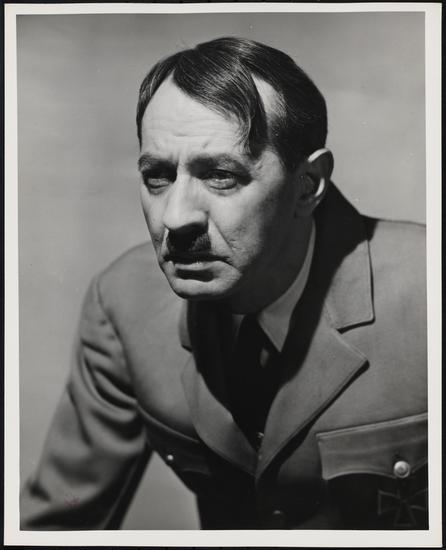 [Arthur Winton as General Von Bruck, Harry Green as Avrum Dovid and Brandon Peters as Adolf Hitler in "The Day Will Come".]