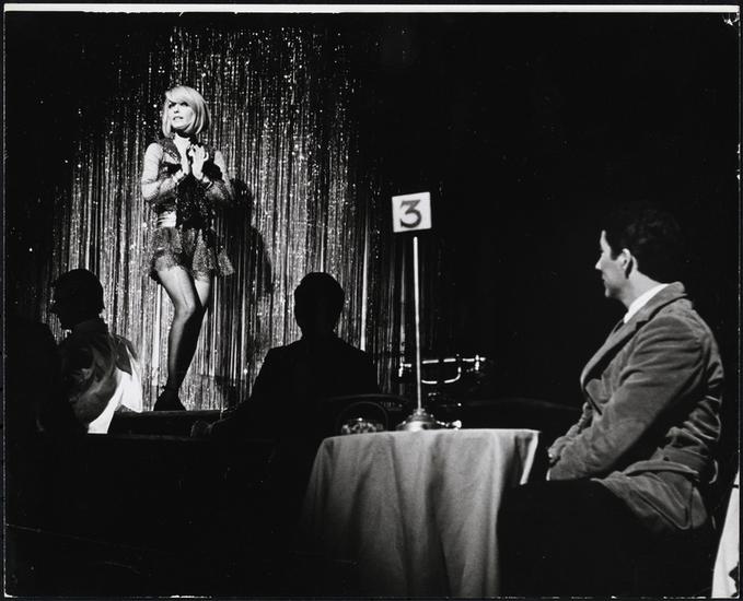 [Jill Haworth as Sally Bowles and Bert Convy as Clifford Bradshaw in "Cabaret".]