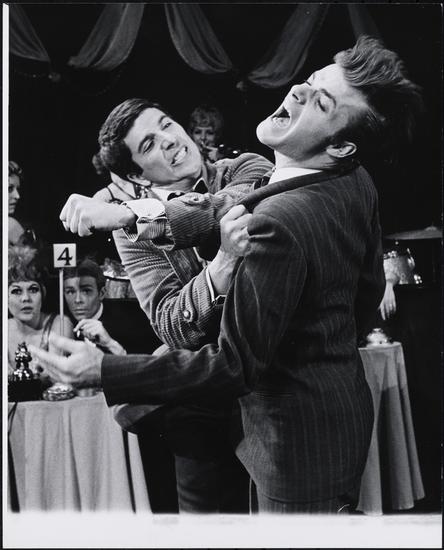[Bert Convy as Clifford Bradshaw and George Reinholt as Ernst Ludwig in "Cabaret".]
